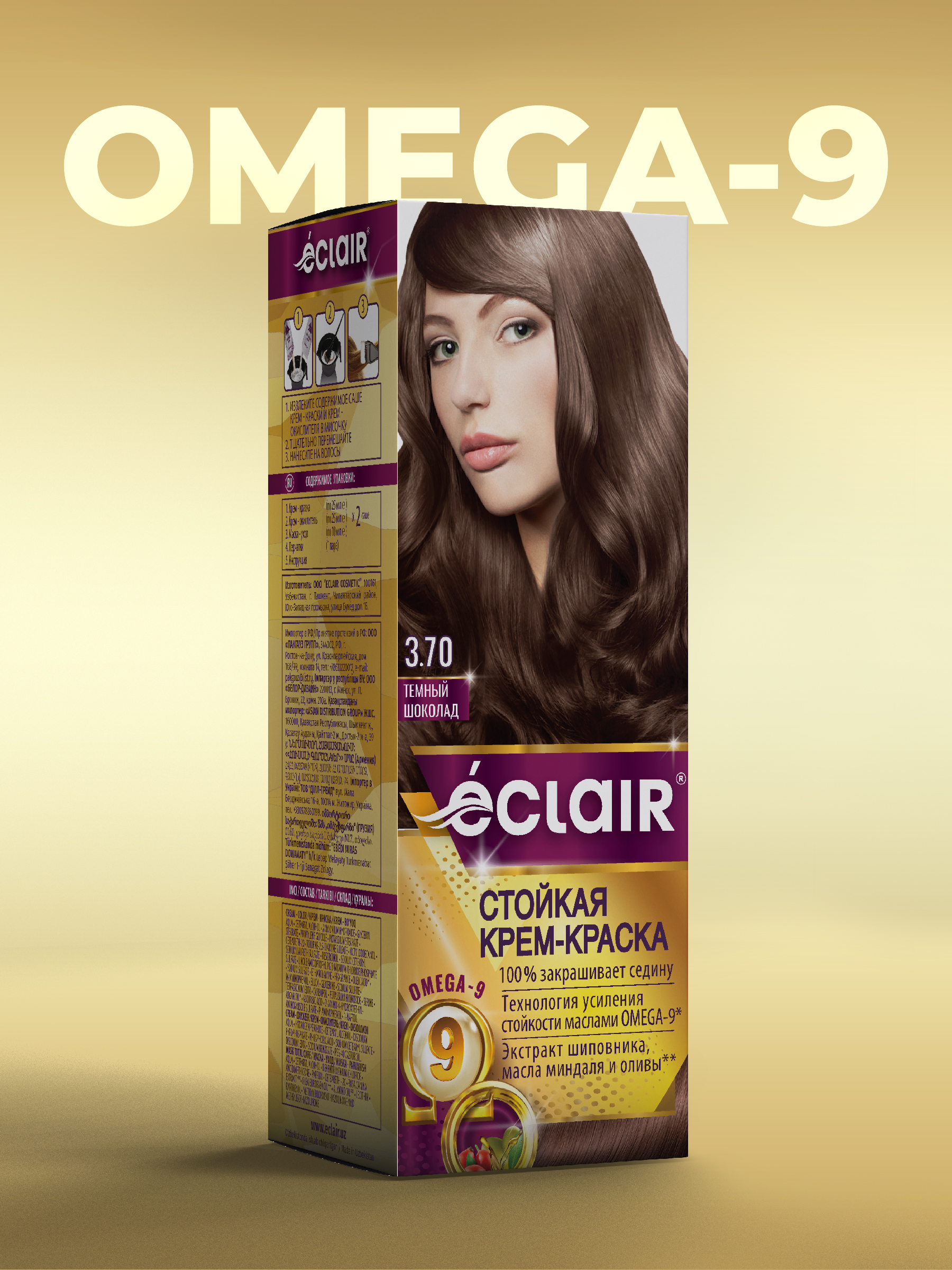 ЕCLAIR Стойкая крем-краска тон 3,70 для волос с маслами «OMEGA 9», ТЕМНЫЙ ШОКОЛАД