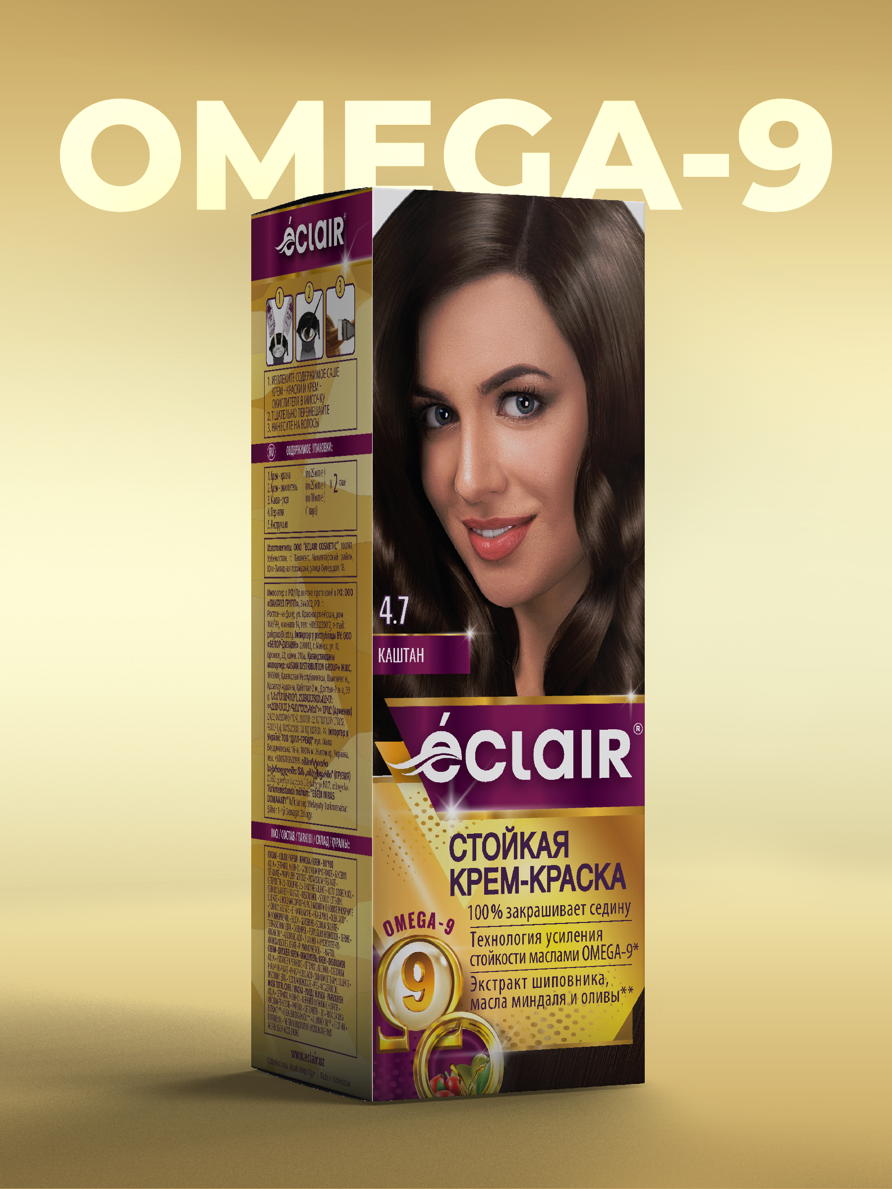 / ЕCLAIR Стойкая крем-краска тон 4.7 для волос с маслами «OMEGA 9», КАШТАН