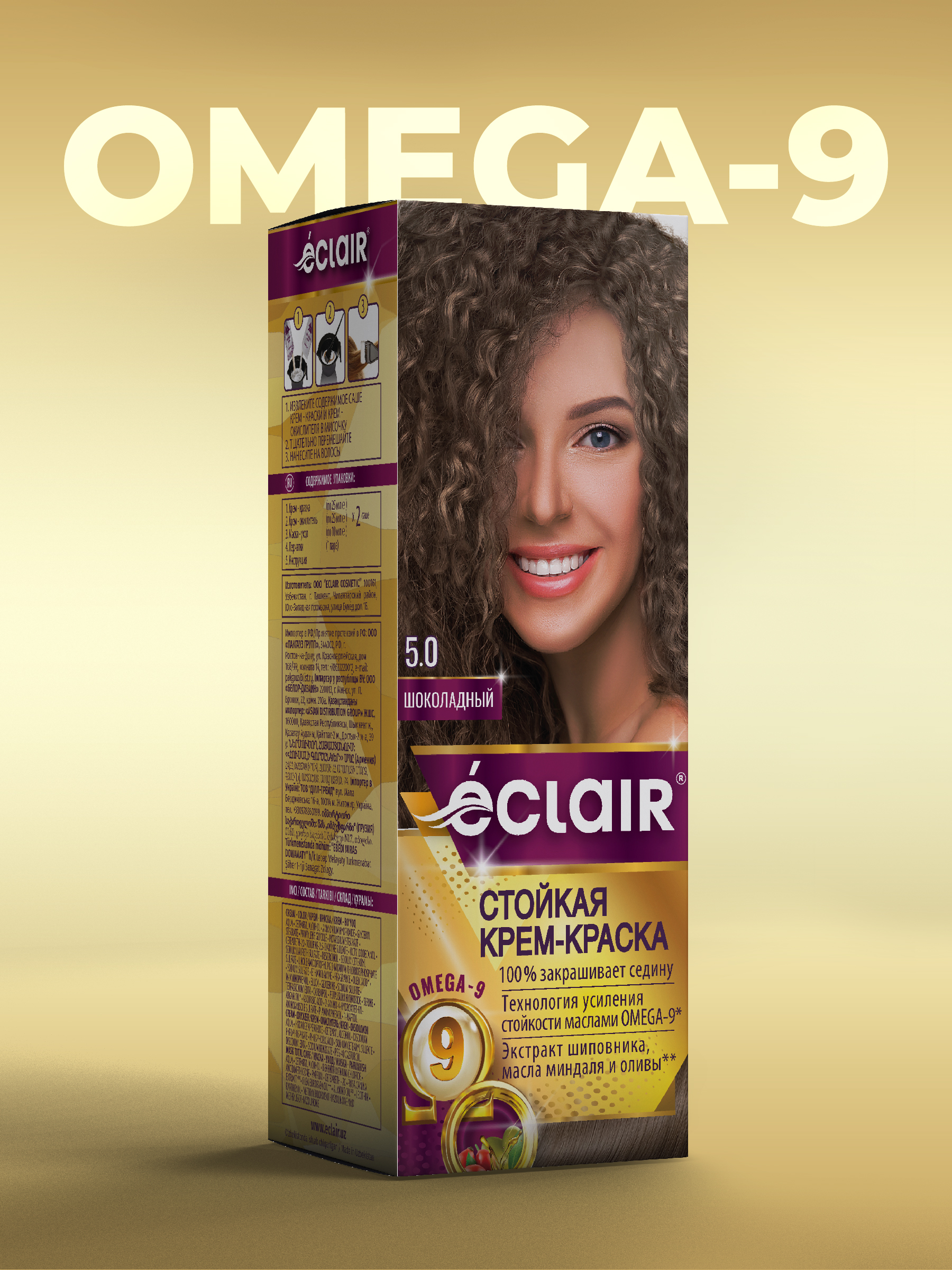 ЕCLAIR Стойкая крем-краска тон 5.0 для волос с маслами «OMEGA 9», ШОКОЛАДНЫЙ