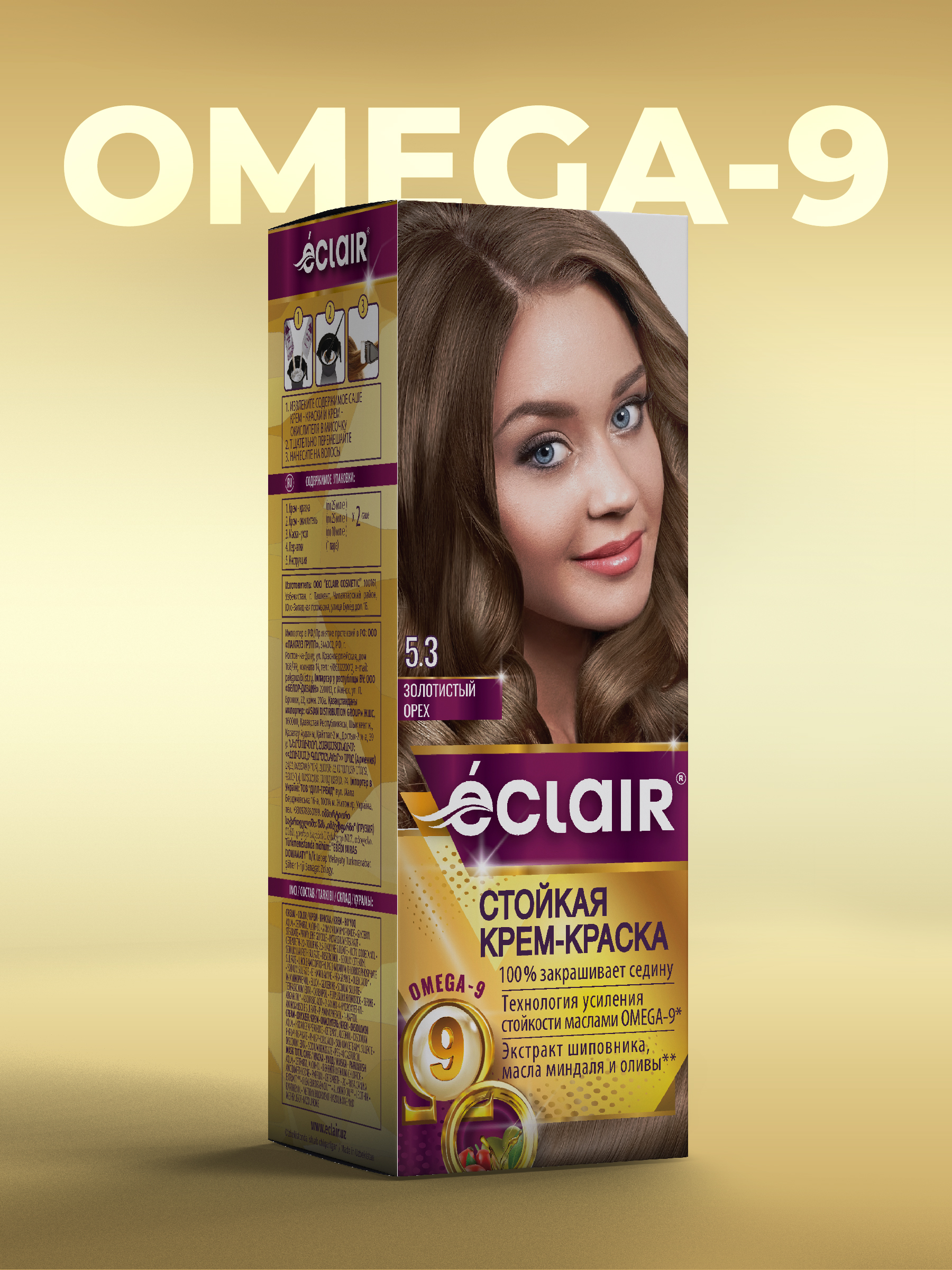 / ЕCLAIR Стойкая крем-краска тон 5.3 для волос с маслами «OMEGA 9», ЗОЛОТИСТЫЙ ОРЕХ