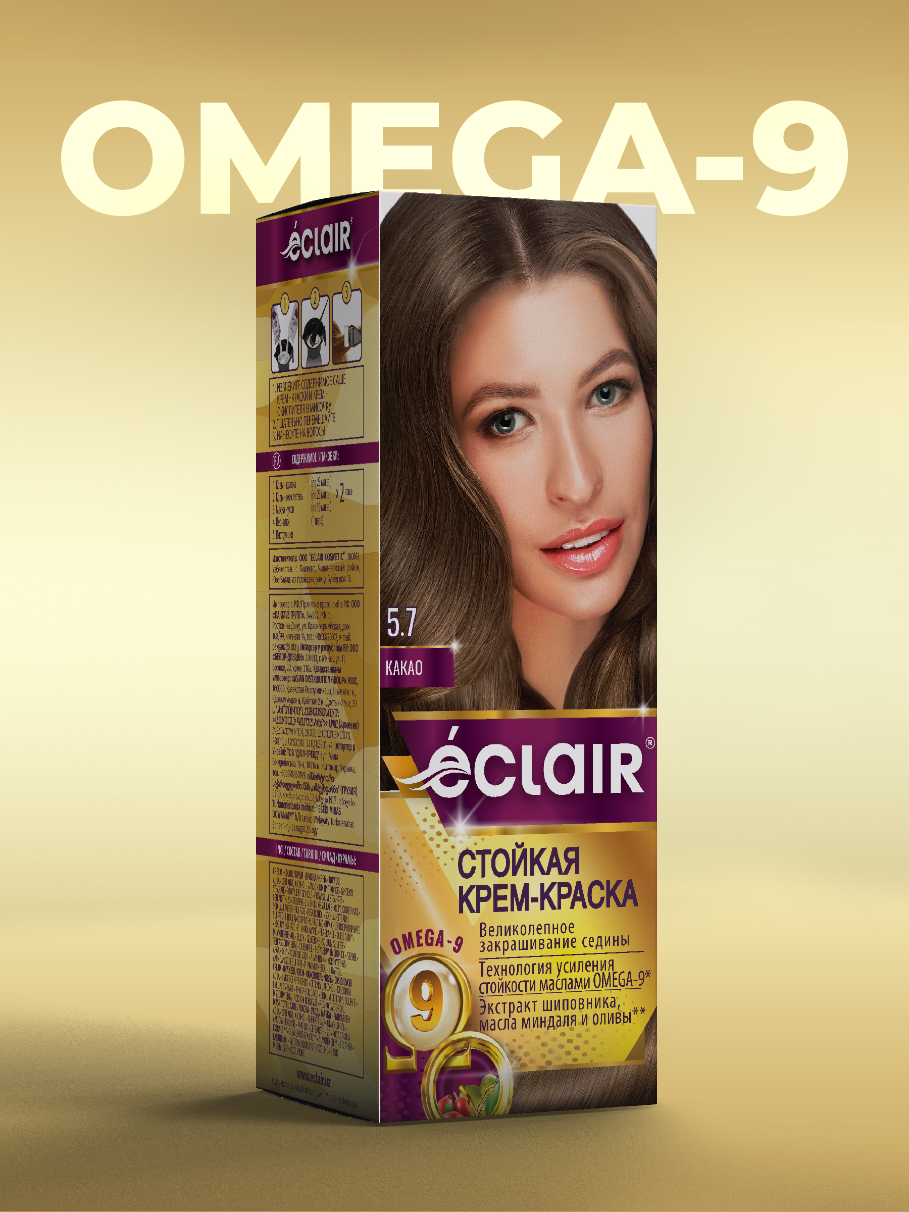 ЕCLAIR Стойкая крем-краска тон 5.7 для волос с маслами «OMEGA 9», КАКАО