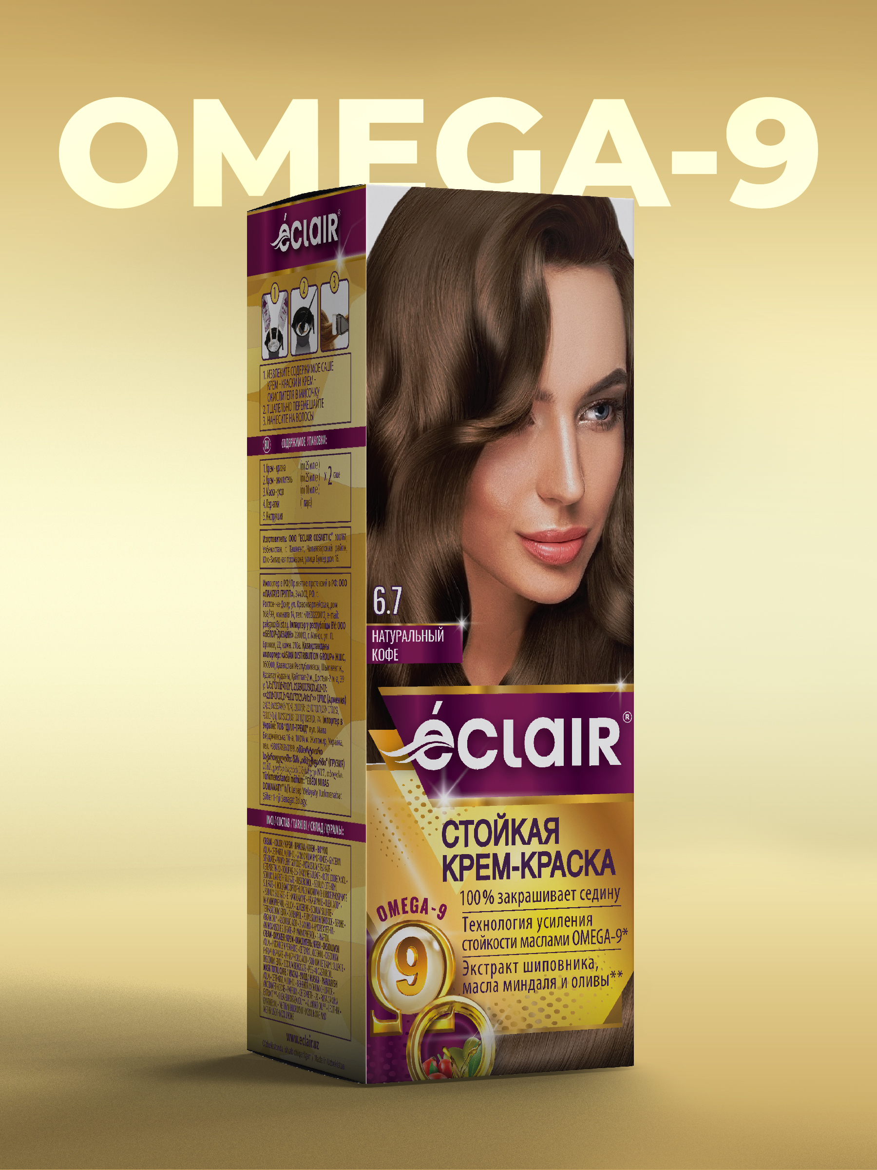 / ЕCLAIR Стойкая крем-краска тон 6.7 для волос с маслами «OMEGA 9», НАТУРАЛЬНЫЙ КОФЕ
