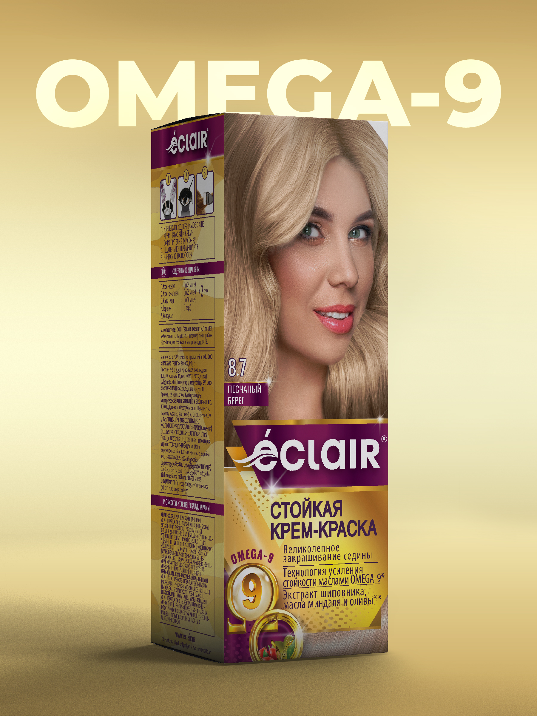 ЕCLAIR Стойкая крем-краска тон 8.7 для волос с маслами «OMEGA 9», ПЕСЧАННЫЙ БЕРЕГ