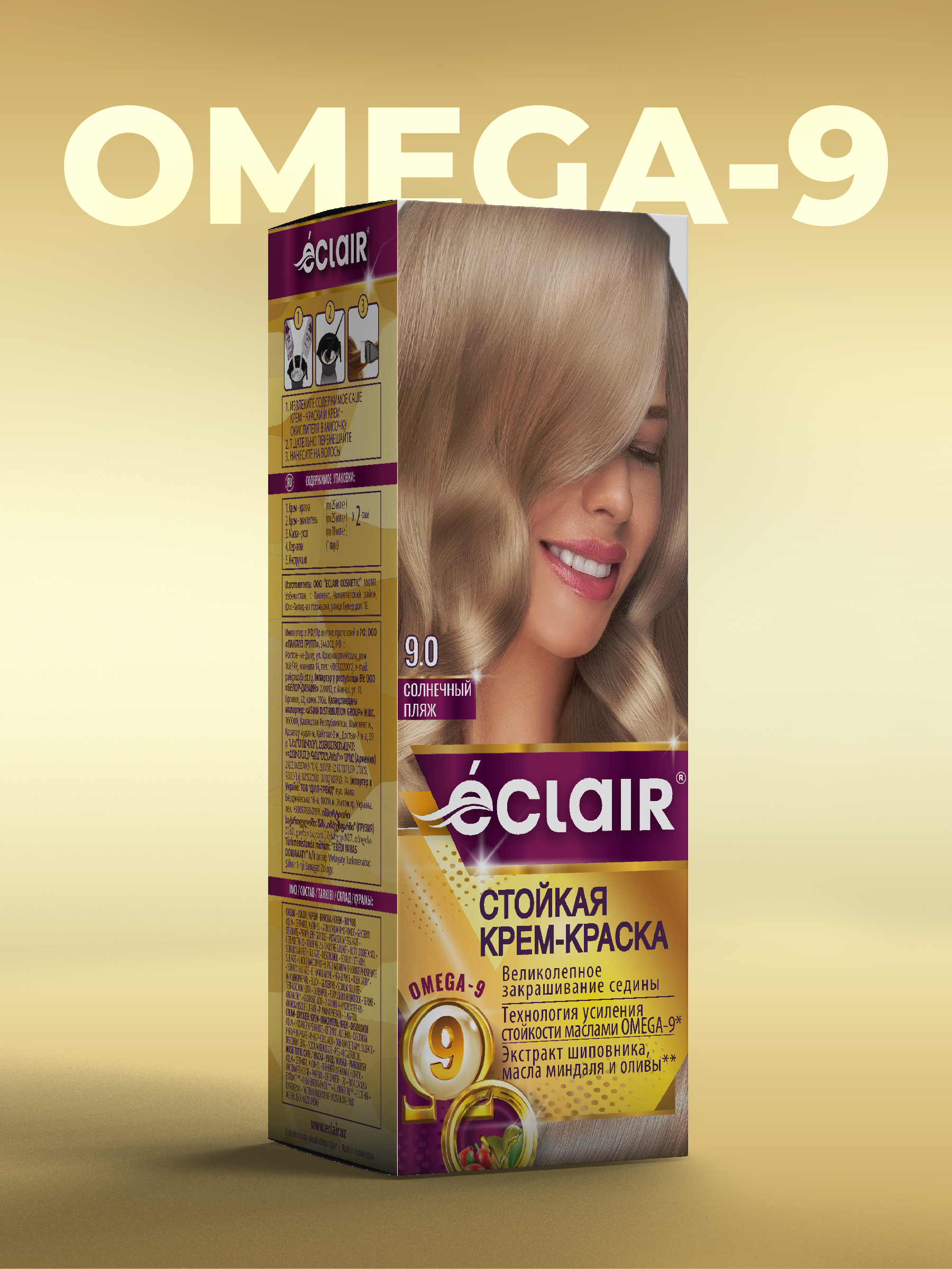 ЕCLAIR Стойкая крем-краска тон 9.0 для волос с маслами «OMEGA 9», СОЛНЕЧНЫЙ ПЛЯЖ