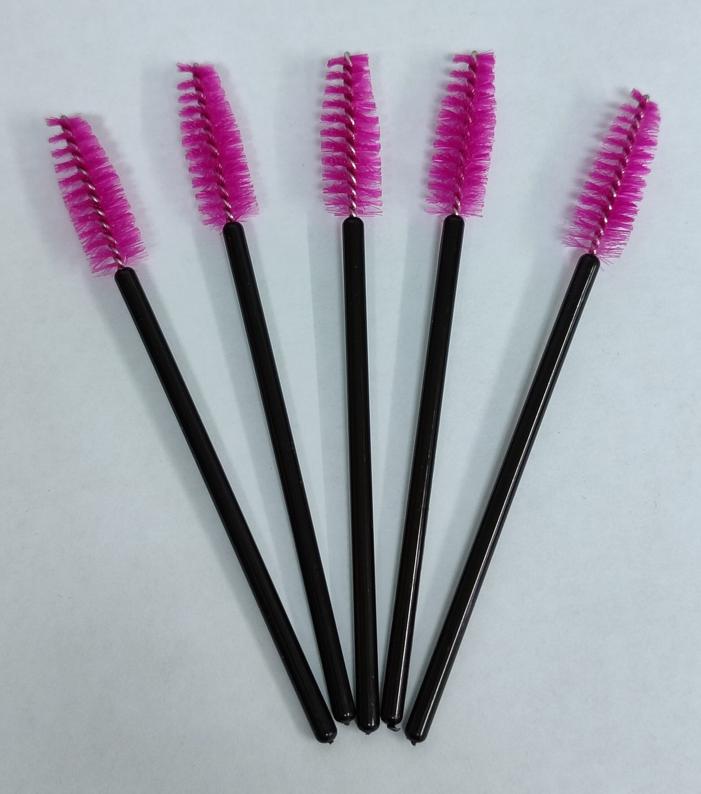 РФ Одноразовая щеточка для ресниц и бровей черный стержень и розовая кисть. Цена за 1 шт (упак. 5шт)
