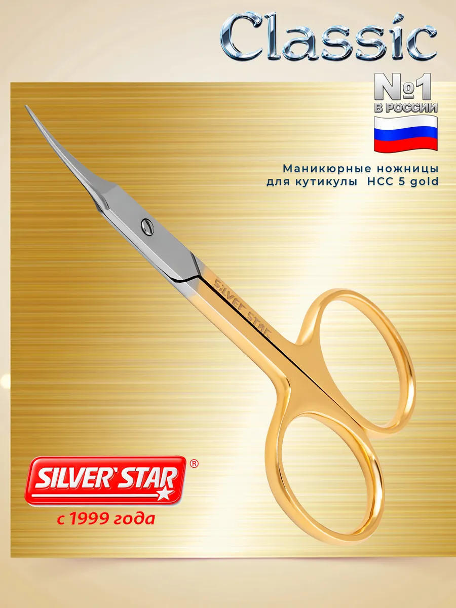 Ножницы маникюрные для кутикулы удобной любимой формы с закругленными кончиками, профессиональные, серия Classic, компания Silver Star оригинал. Острые, не скрипят, не заедают, не ржавеют. Размер 10 см, длина лезвий 20 мм, нержавеющая сталь твердостью 42-44 HRC, дорогой золотистый цвет, который добавляет ножницам престижный вид.