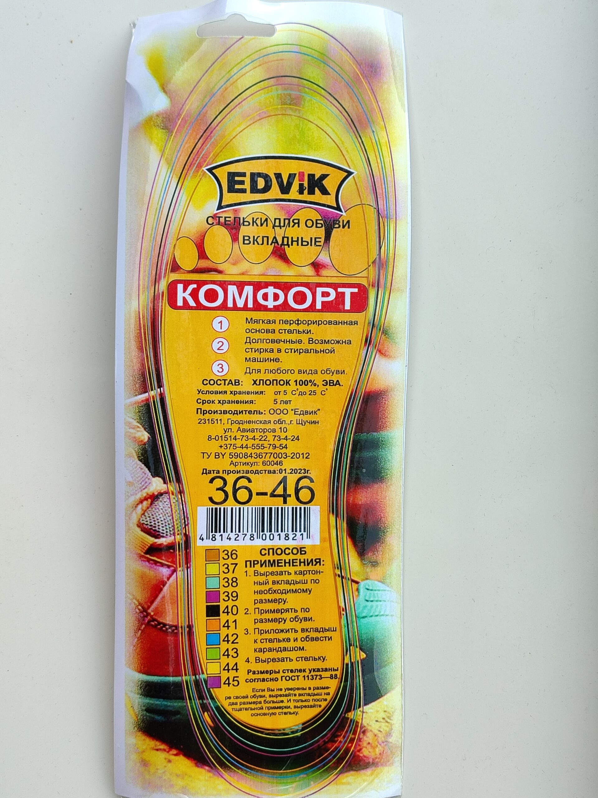 / Стельки для обуви КОМФОРТ универсальные Размер 36-46